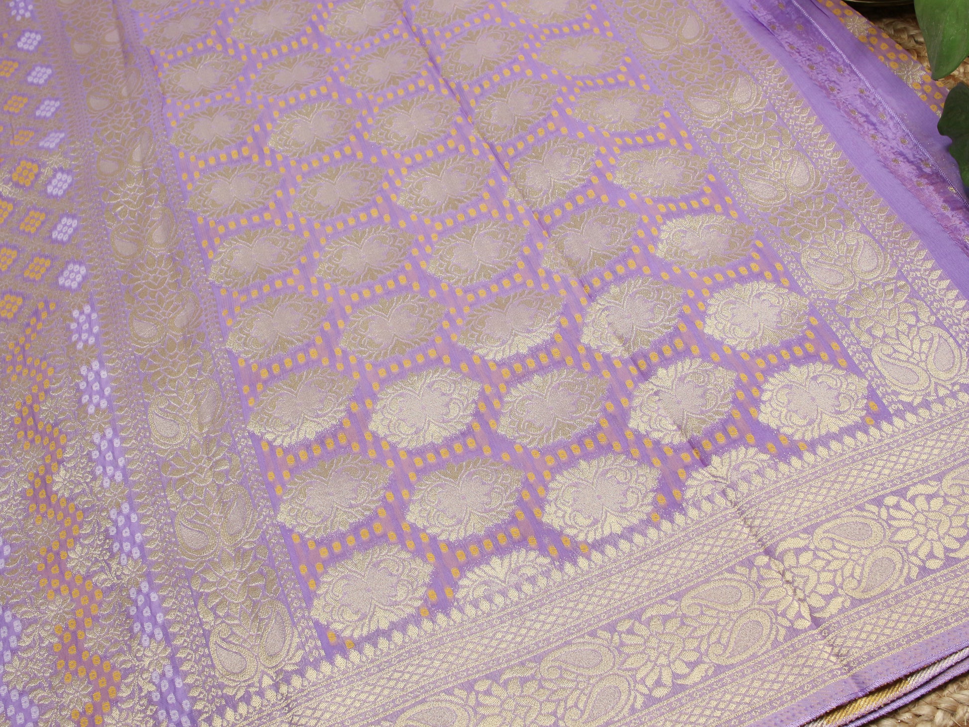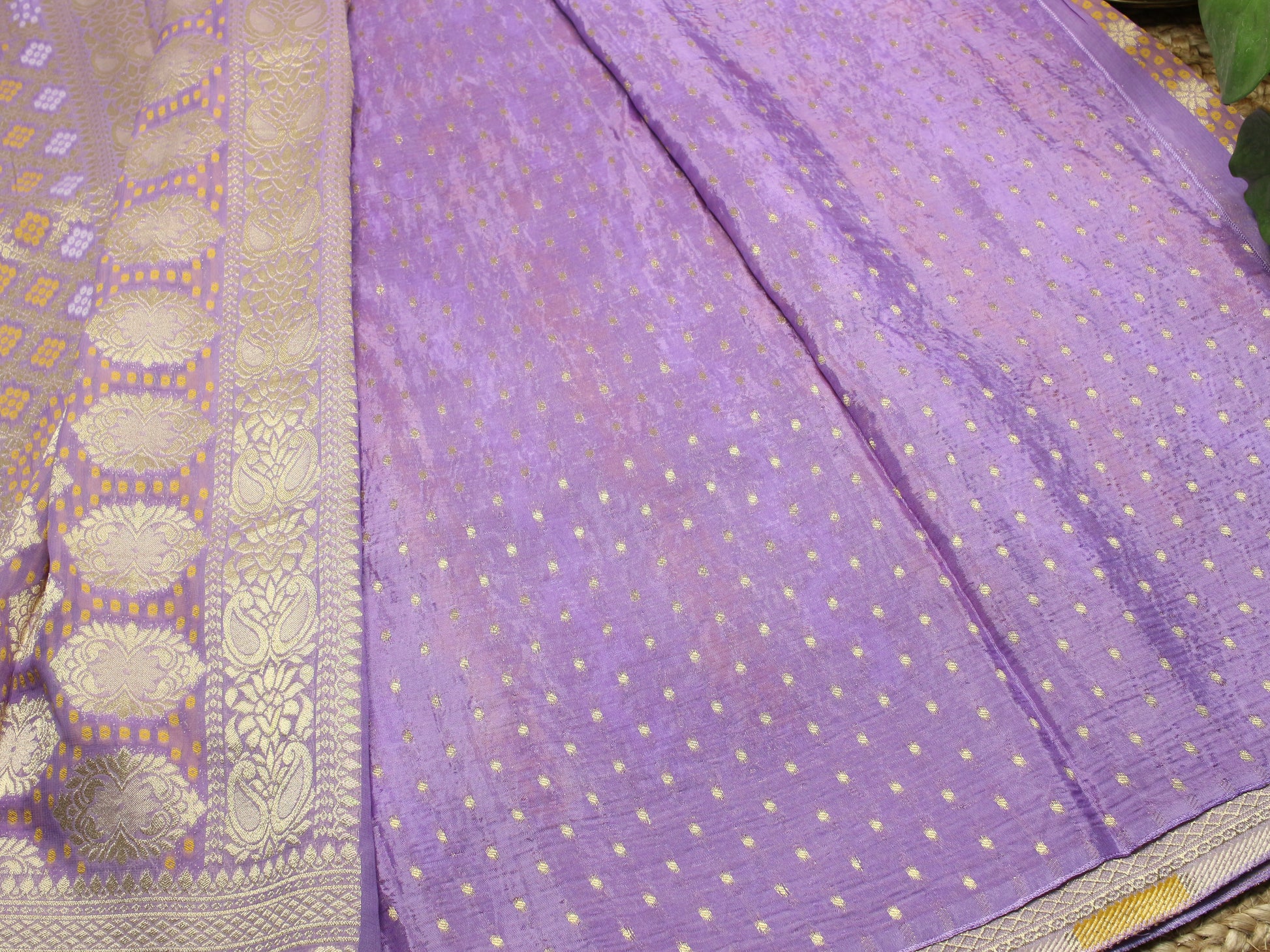 Elegant lavender Banarasi Semi-Georgette Saree with Gold Zari Weaving