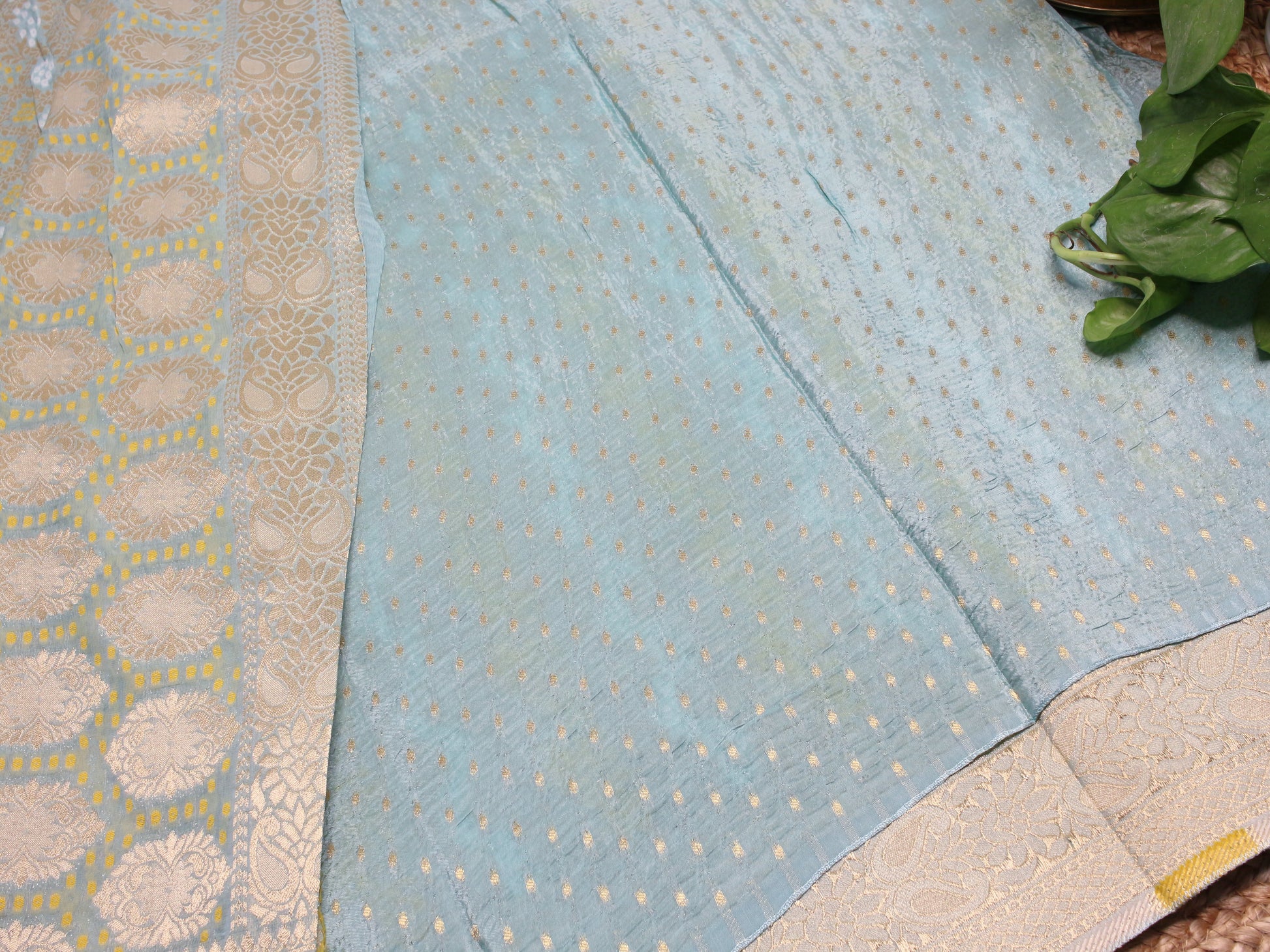 Elegant Sky Blue Banarasi Semi-Georgette Saree with Gold Zari Weaving