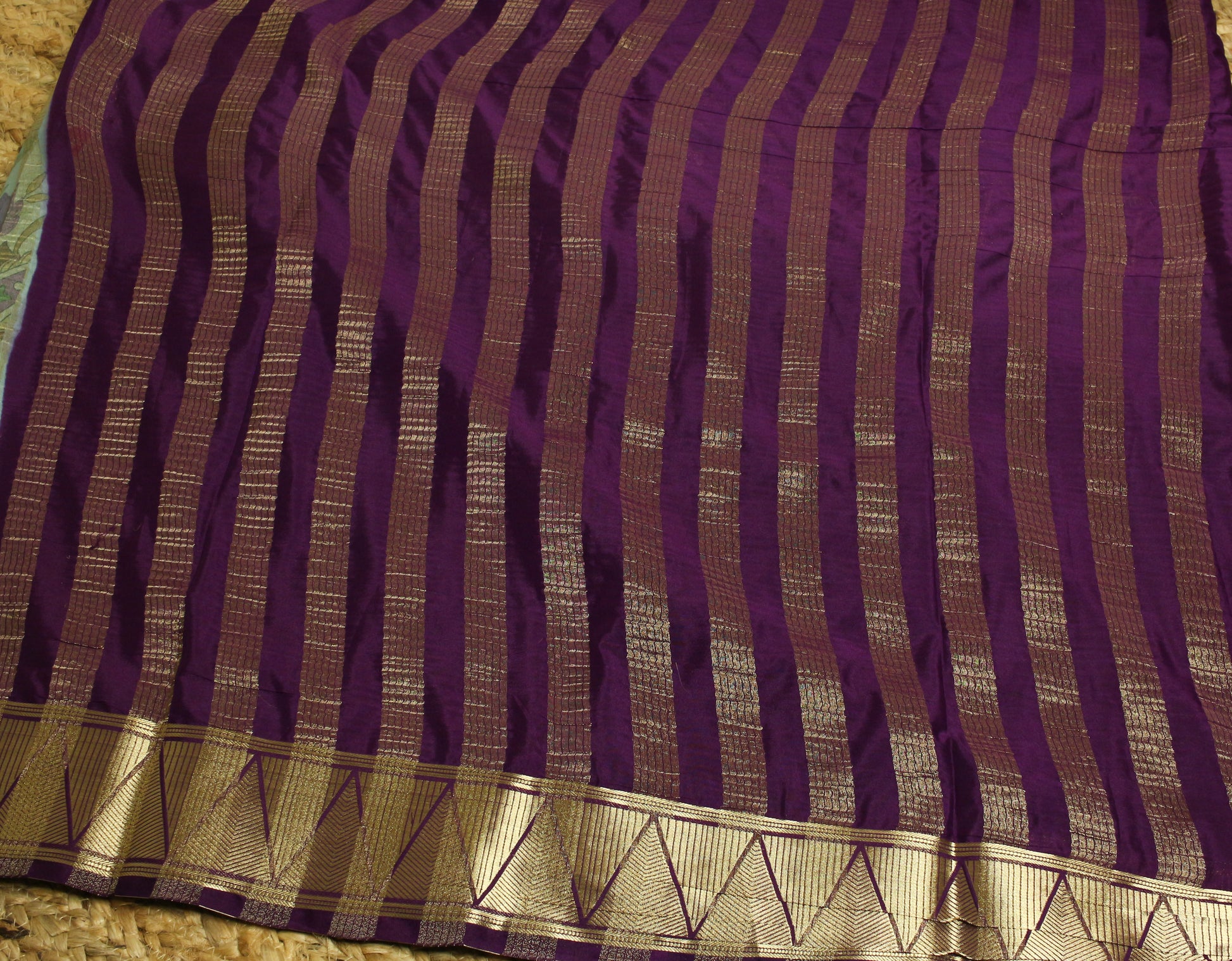 Border: Bold chevron-style gold zari on both ends