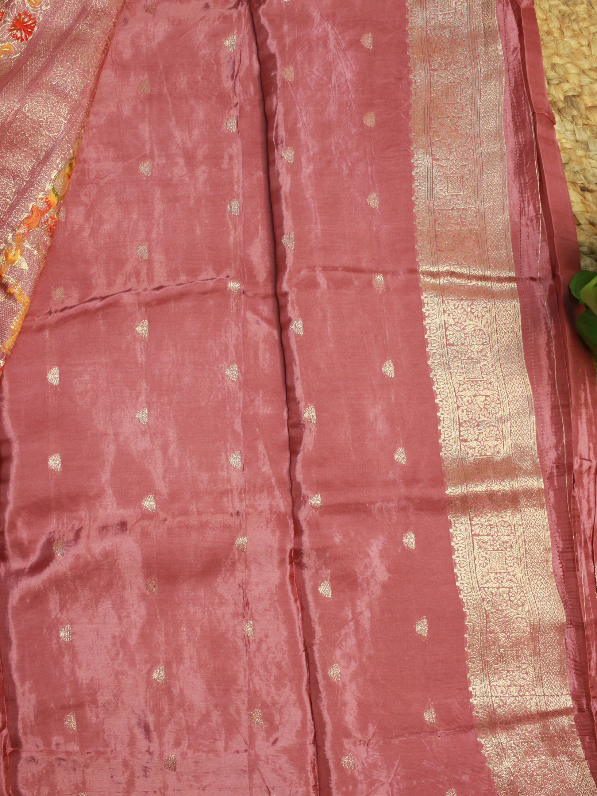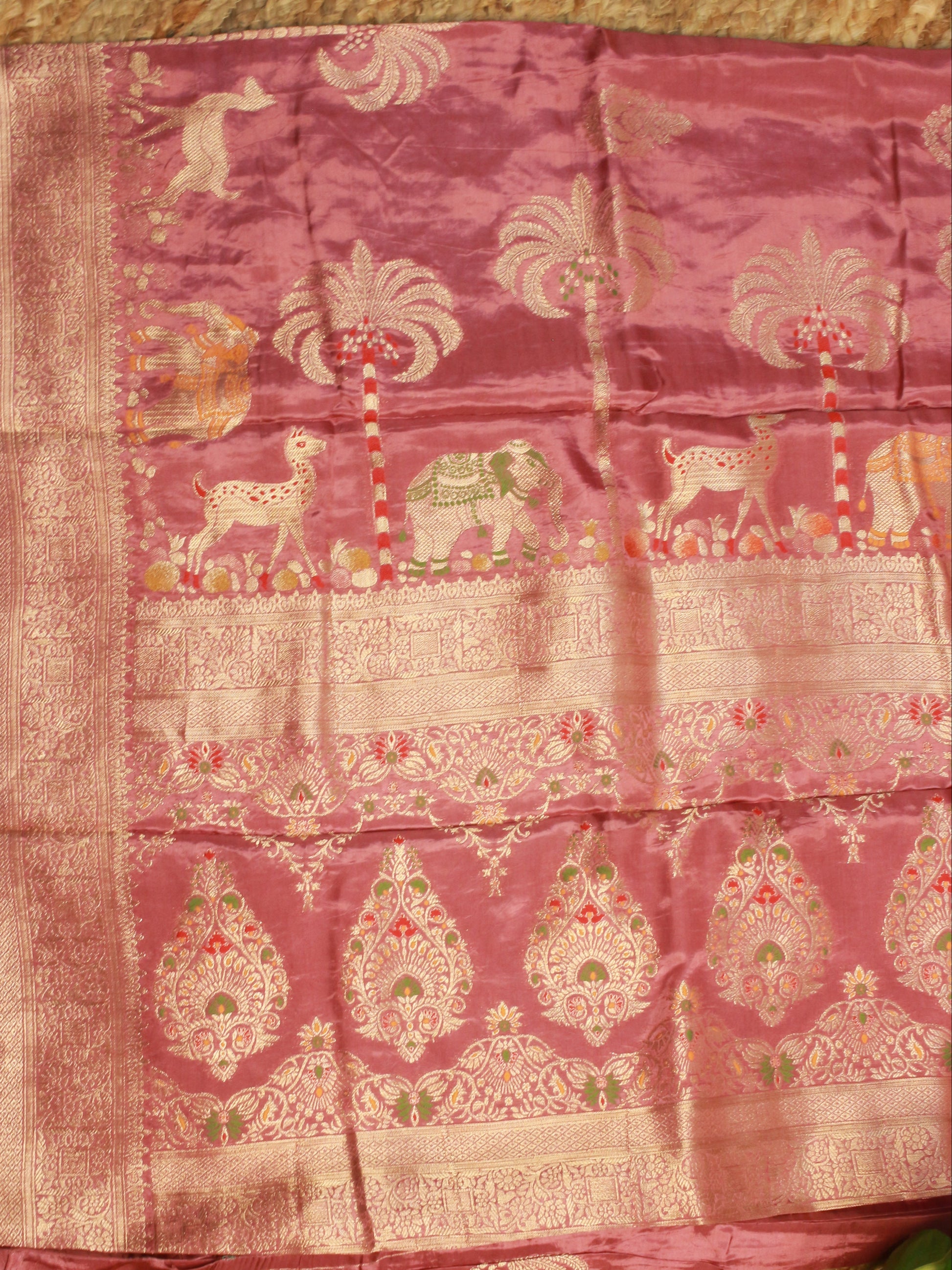 Onion Pink Russian Silk Saree with Woven Animal & Nature Motifs