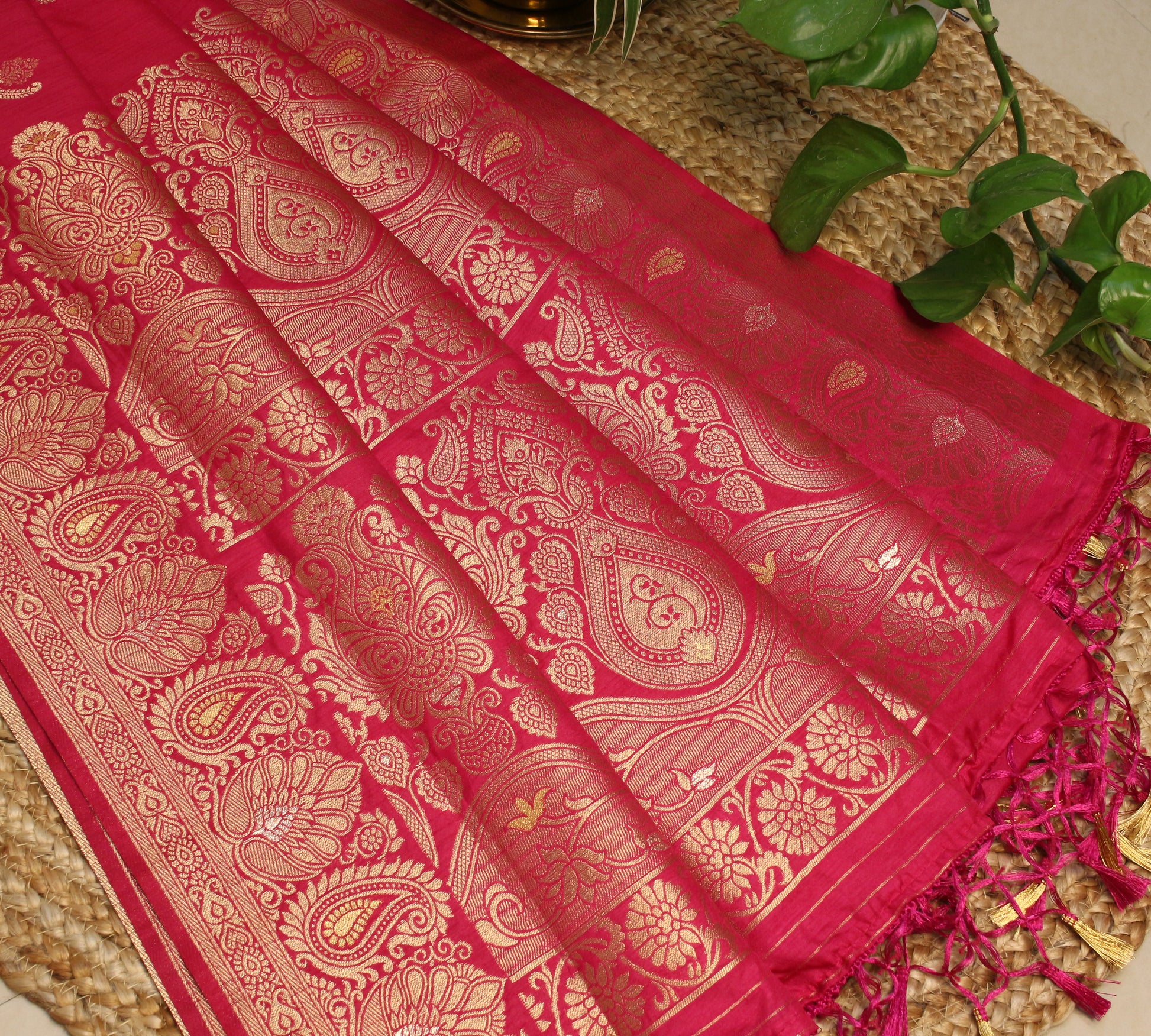 Pink Banarasi Saree with Gold Zari Lotus & Paisley Design