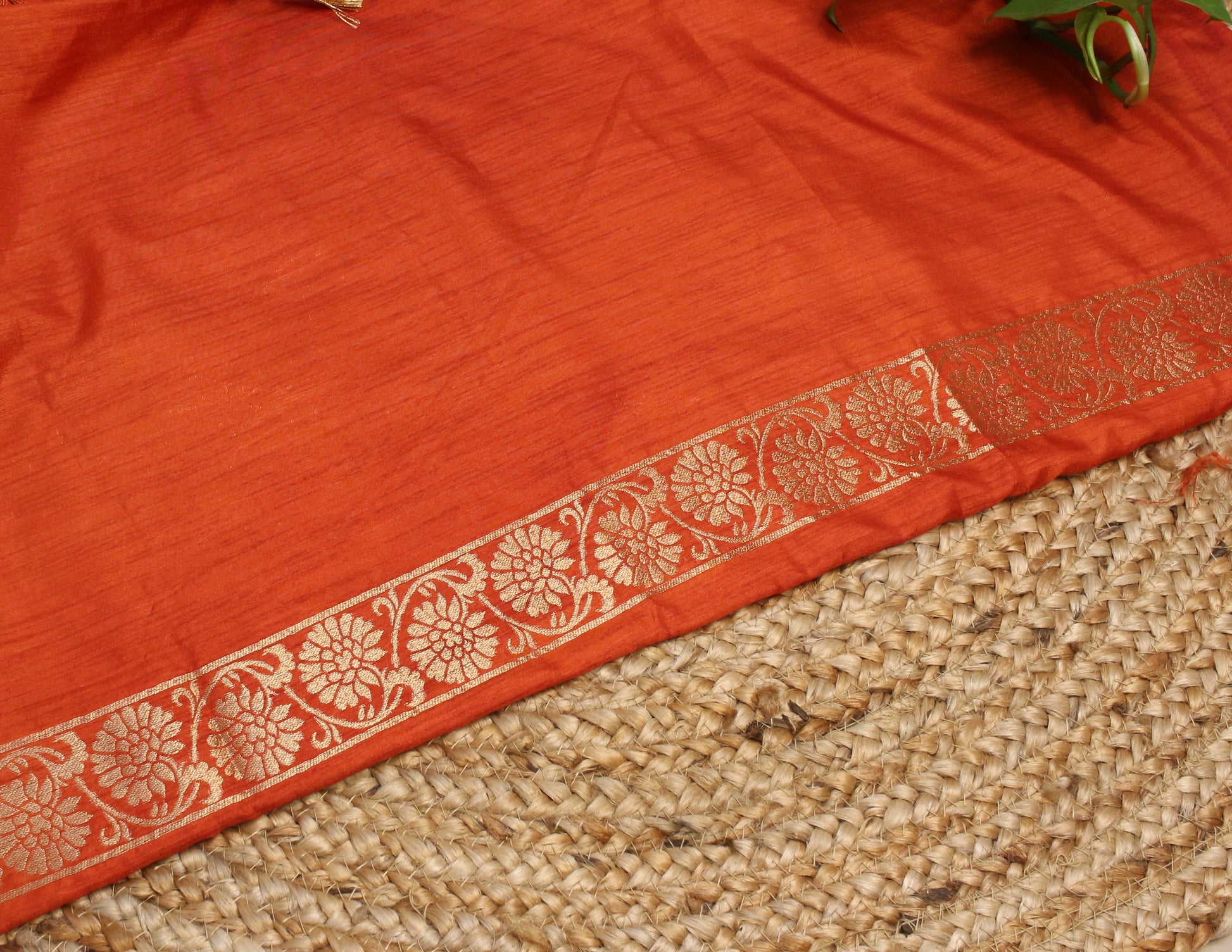 Radiant Rust Orange Banarasi Saree with Gold Zari Lotus & Paisley Design.