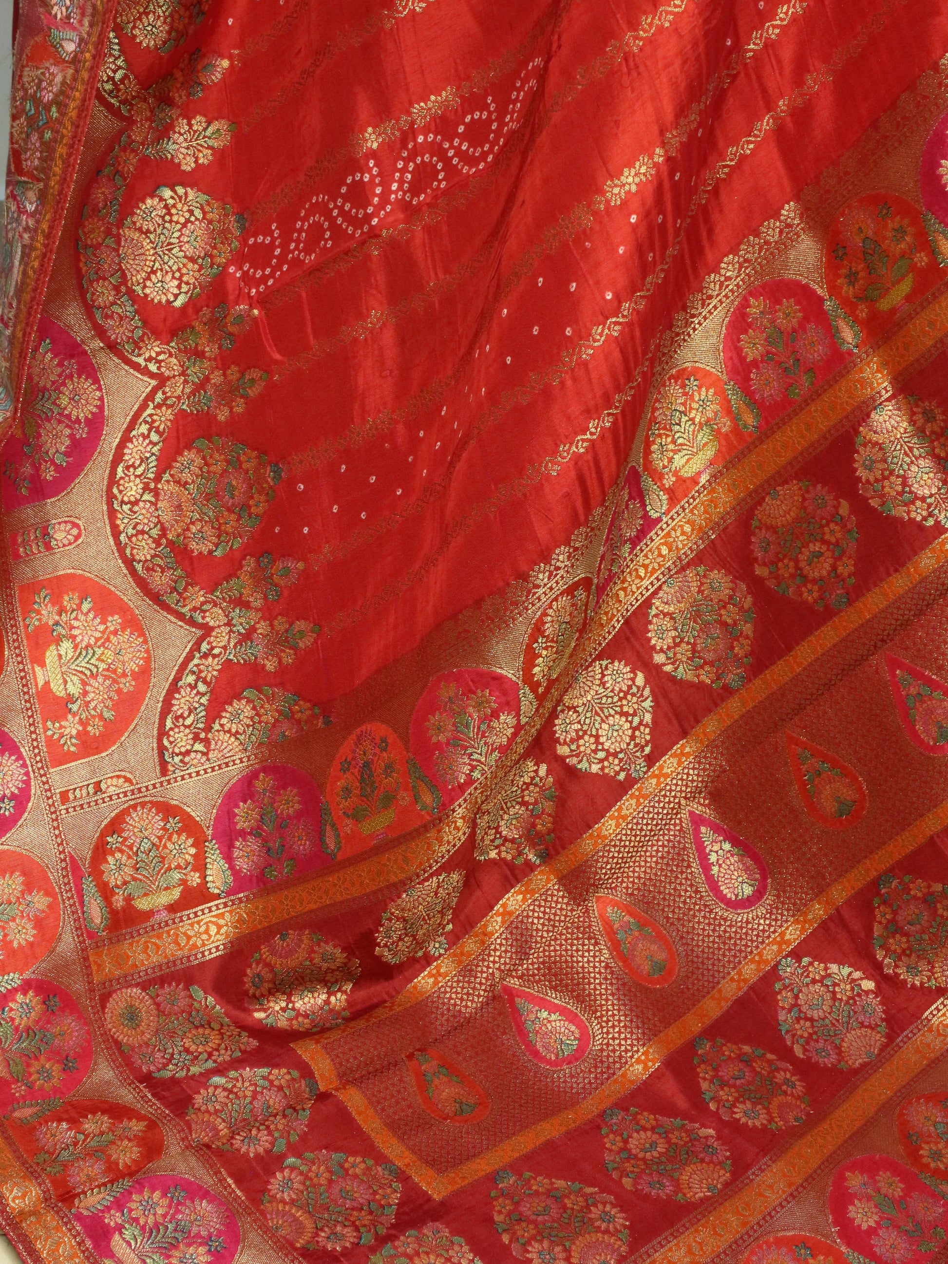 Red Kani Silk Saree with Bandhani Design & Gold Zari Weaving