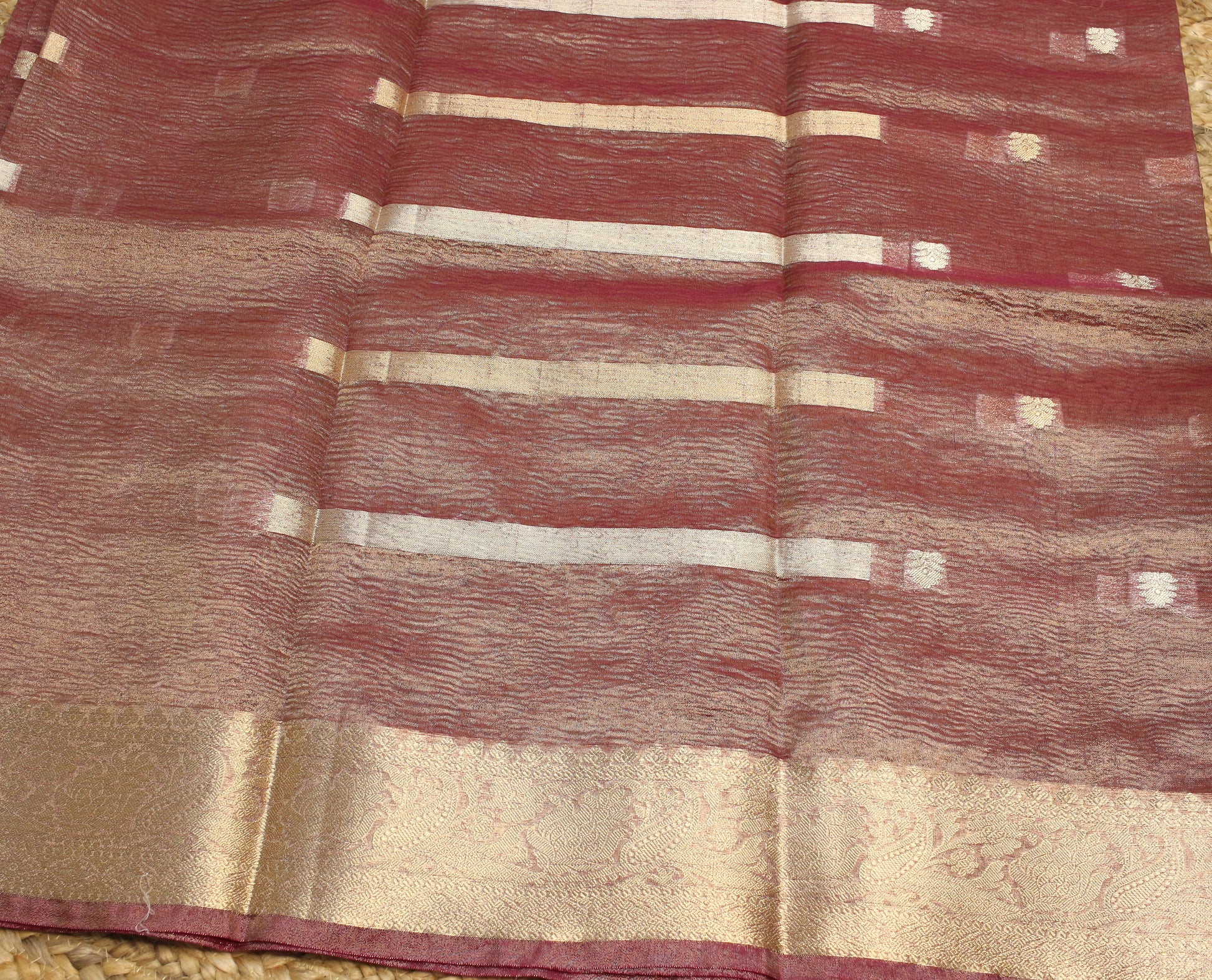 Rich Wine Crush Tissue Saree with Zari Border & Buti Accents